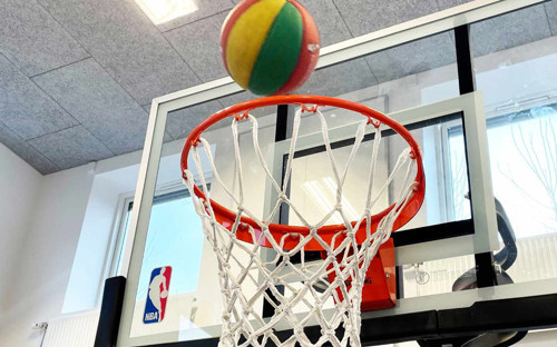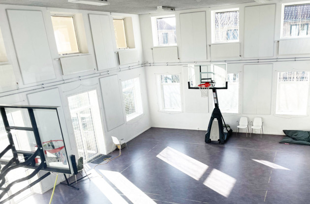 Vi har en super fed sal hvor mulighederne er mange. Der spilles stikbold, fodbold, dans, badminton, basketball og hvad man ellers kan finde på. Derudover bruger vi til tider skolens baner og gymnastiksale, i det omfang det kan lade sig gøre.